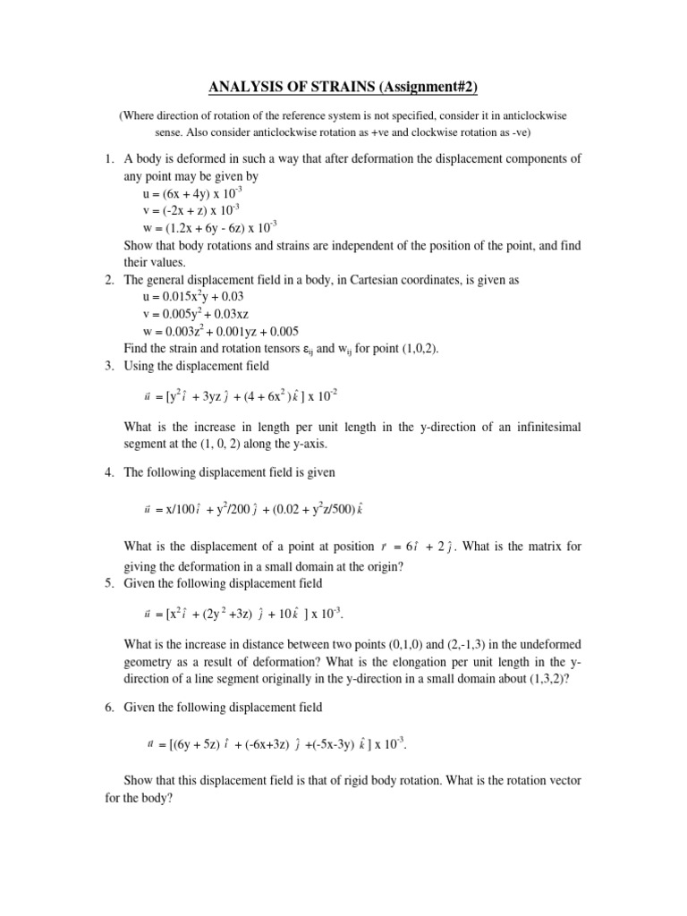 2. The general displacement field in a body, in Cartesian coordinates, is given as