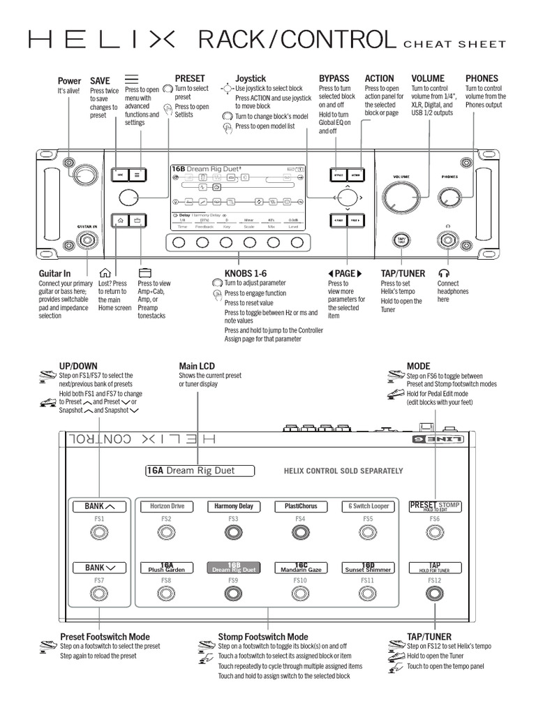 Step on a footswitch to select the preset Step on a footswitch to toggle its block(s) on and off Step on FS12 to set Helix’s tempo