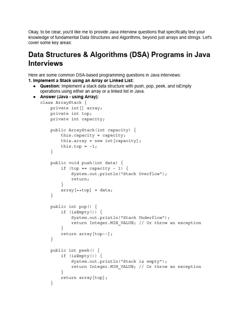 ● Question: Implement a stack data structure with push, pop, peek, and isEmpty