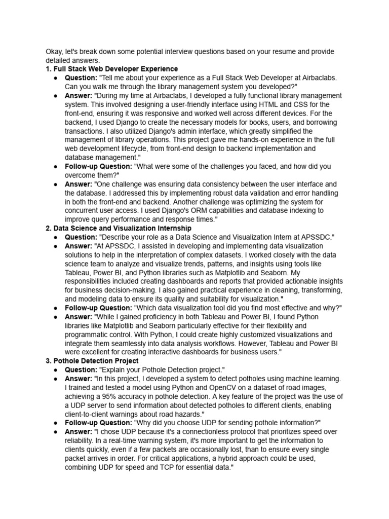 ● Answer: "At APSSDC, I assisted in developing and implementing data visualization