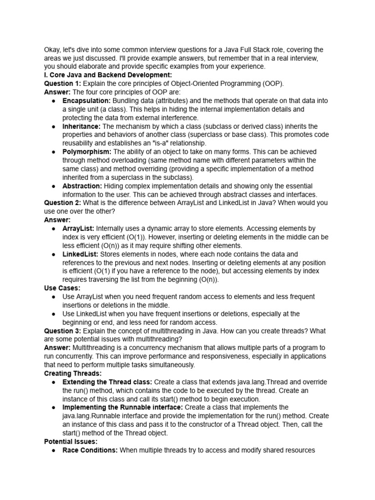 Okay, let's dive into some common interview questions for a Java Full Stack role, covering the
