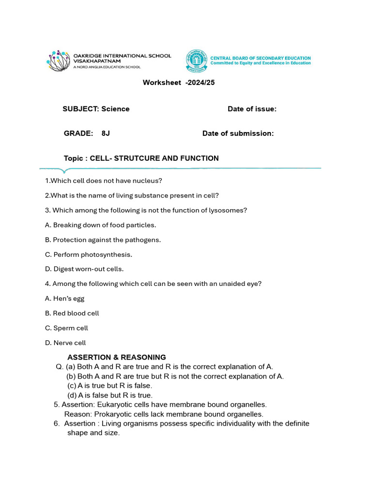 Topic : CELL- STRUTCURE AND FUNCTION