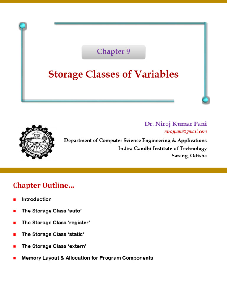 ◼ The default storage class of a variable is ‘auto’. i.e.,
