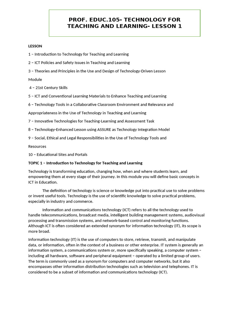 TOPIC 1 – Introduction to Technology for Teaching and Learning