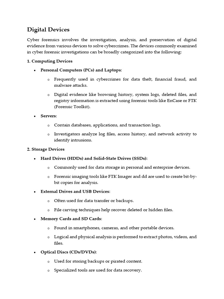 evidence from various devices to solve cybercrimes. The devices commonly examined
