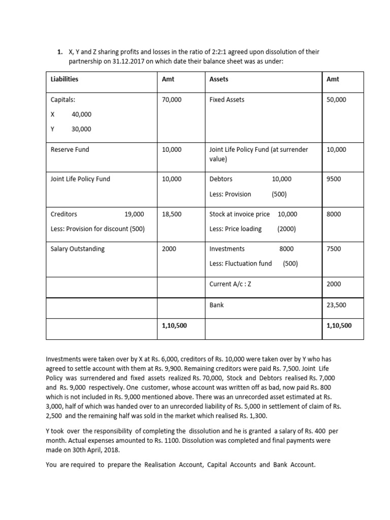 5. M/s XYZ is a partnership firm that is getting dissolved. The following information is extracted from
