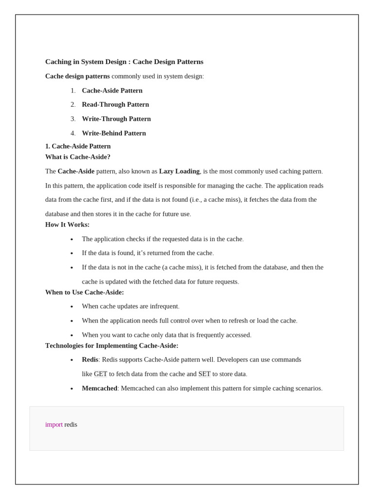 The Cache-Aside pattern, also known as Lazy Loading, is the most commonly used caching pattern.