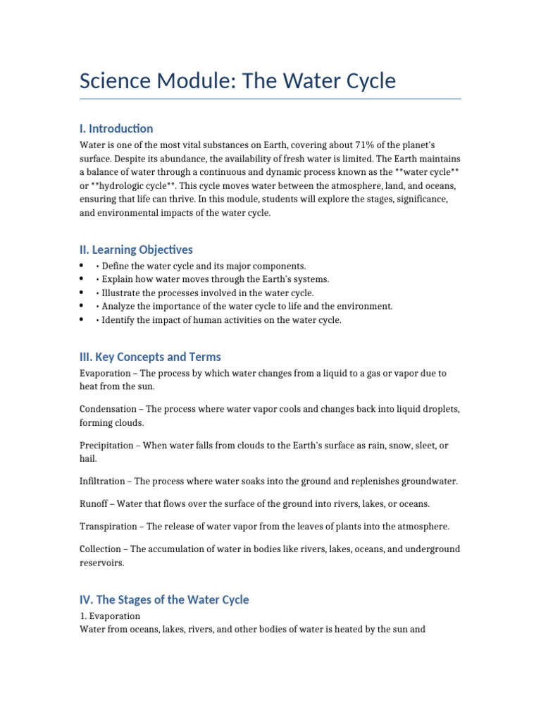 ensuring that life can thrive. In this module, students will explore the stages, significance,