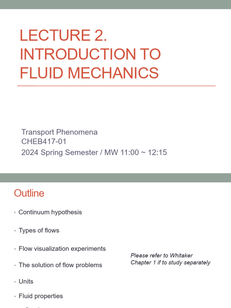 • In treating fluid as a continuum, we postulate velocity, pressure, density,