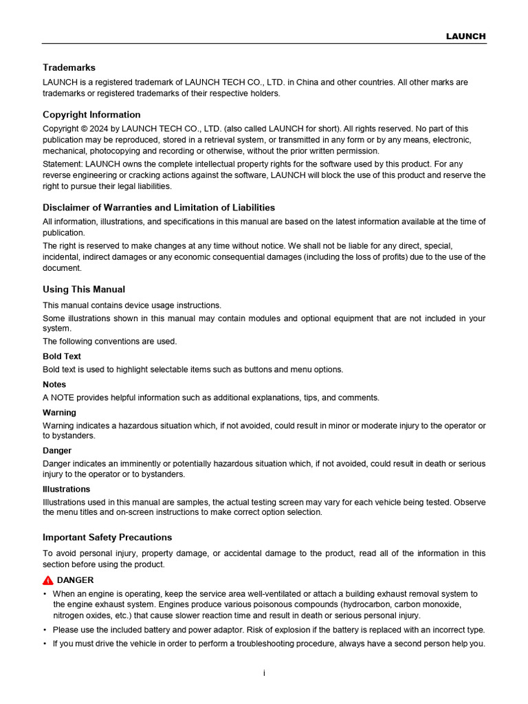 Copyright © 2024 by LAUNCH TECH CO., LTD. (also called LAUNCH for short). All rights reserved. No part of this