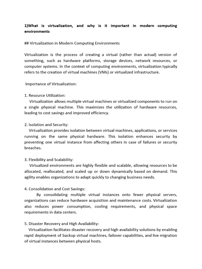 1)What is virtualization, and why is it important in modern computing