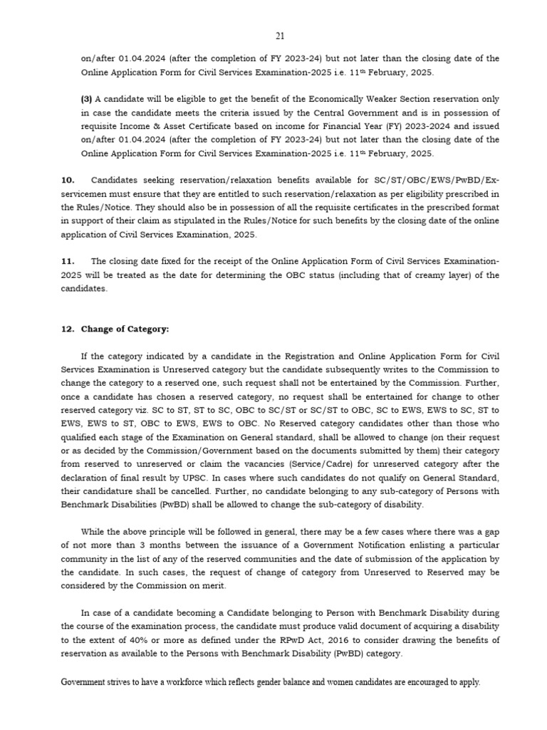 10. Candidates seeking reservation/relaxation benefits available for SC/ST/OBC/EWS/PwBD/Ex-