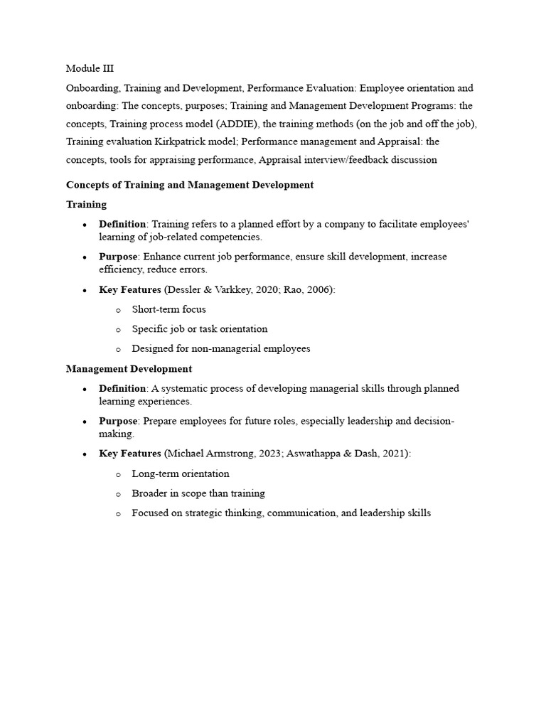 • Key Features (Michael Armstrong, 2023; Aswathappa & Dash, 2021):