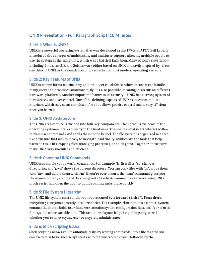 UNIX Presentation - Full Paragraph Script (10 Minutes)