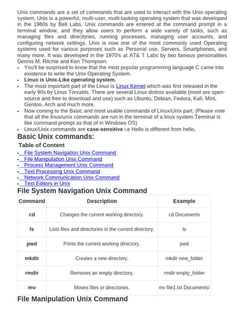 Unix commands are a set of commands that are used to interact with the Unix operating