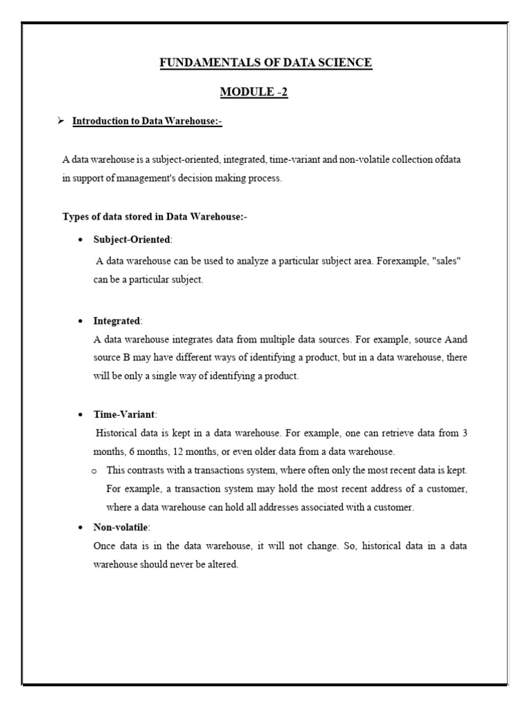 A data warehouse is a subject-oriented, integrated, time-variant and non-volatile collection ofdata