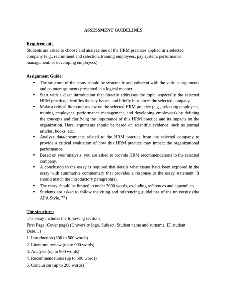 Students are asked to choose and analyze one of the HRM practices applied in a selected