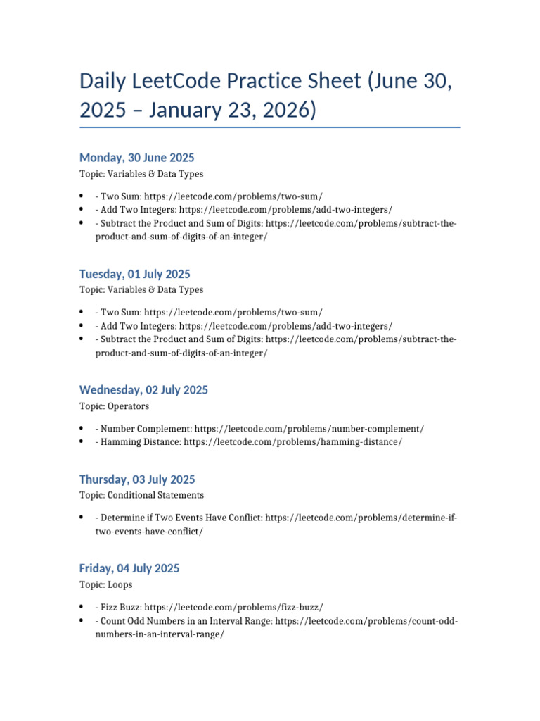 - Two Sum: https://leetcode.com/problems/two-sum/