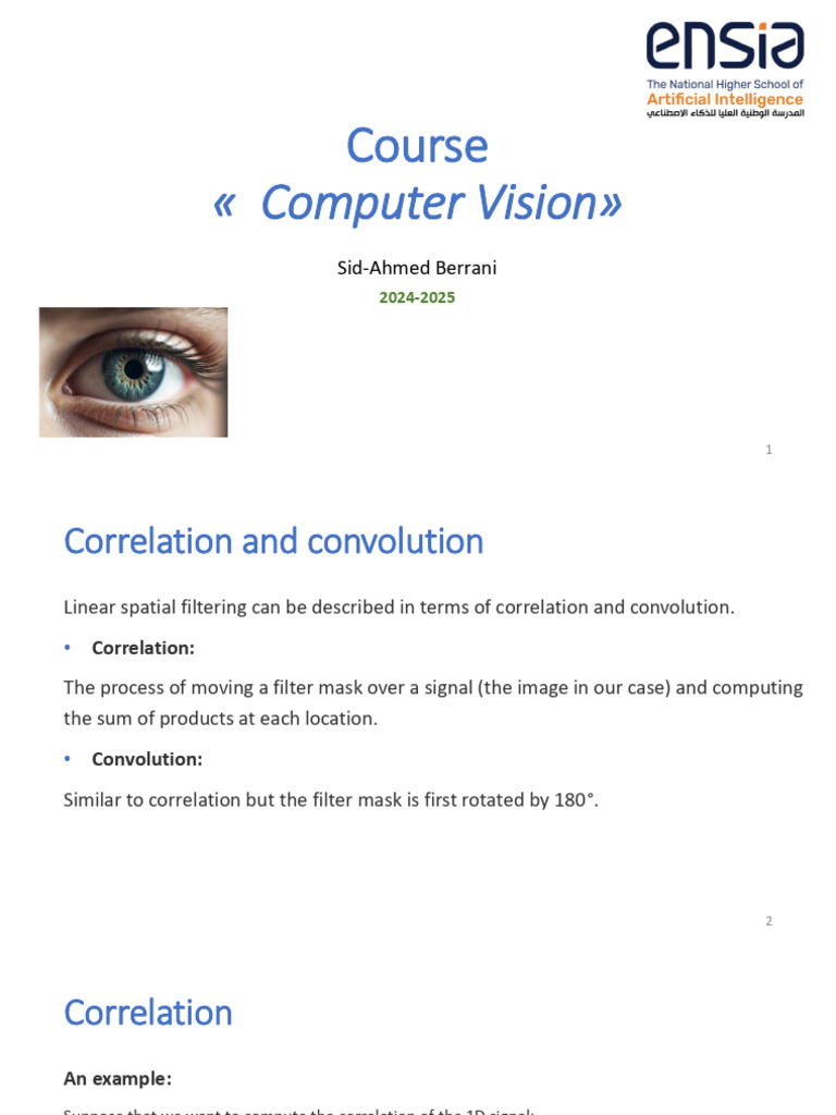 • Correlation is a function of displacement of the filter. The first value of correlation