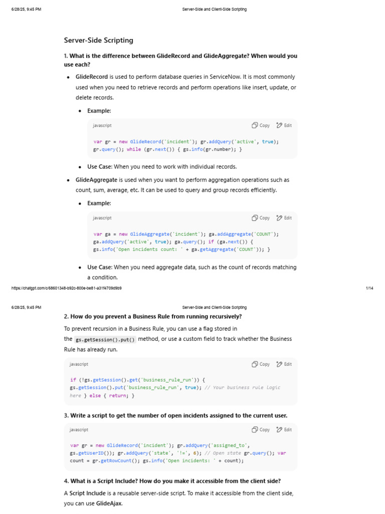 1. What is the difference between GlideRecord and GlideAggregate? When would you