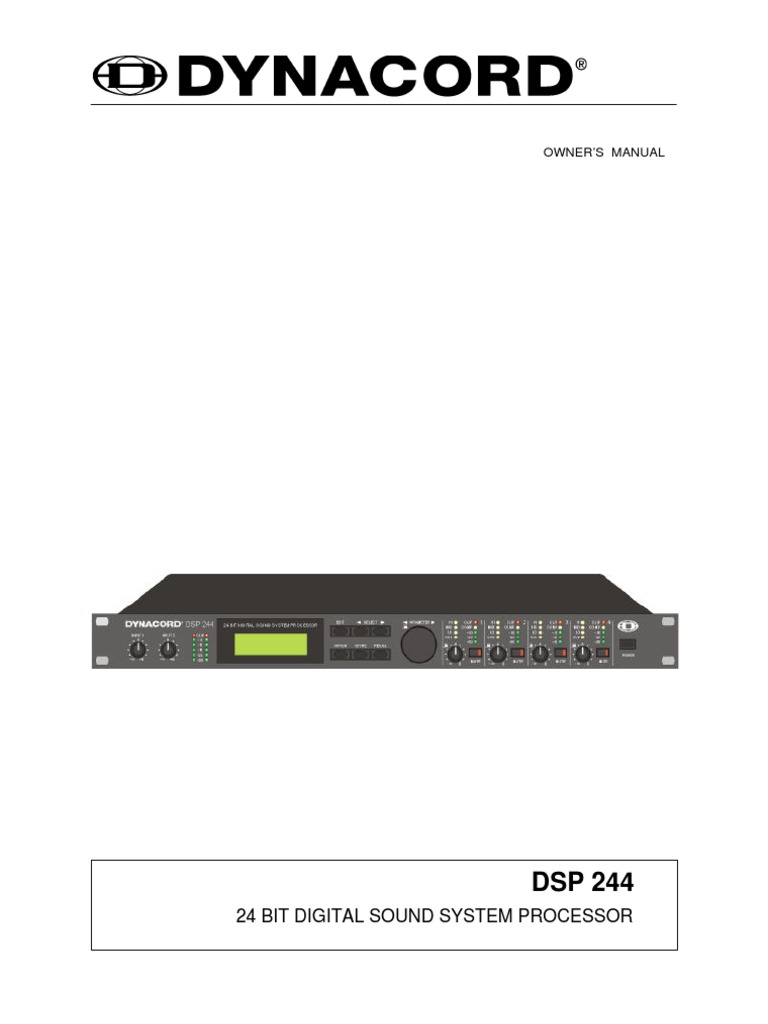 First of all, we would like to thank you for and congratulate you on buying the DYNACORD Digital Sound System Processor DSP 244. To ensure an optimum in the performance of the appliance and to prevent any damage resulting from erroneous or inadvertent handling or operation, please read this owners manual carefully, before operating the DSP 244.
