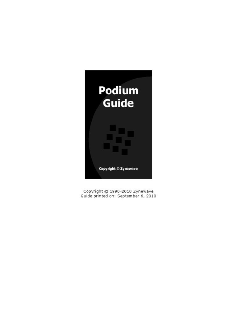 currently under the mouse cursor. Popup help will only appear if the help panel is closed. Enable Online Help: If your PC is connected to the internet, you can use this option to get access to context help in the online Podium guide. In dialog windows you can click the Help button to open the guide page that describes the settings in the dialog. In non-dialog windows you can press Shift+F1 to open context help for whatever is under the mouse cursor. For example, if you hover the mouse over the Help menu button and then press Shift+F1, a link to this section will open in your default web browser. Open Podium Guide: Opens the local Podium Guide.pdf file which was installed with the Podium application. Browse Zynewave Website, Browse Podium User Community: Opens the corresponding website in your default web browser. Browse Podium Video Tutorials: Opens the ZynewaveDotCom YouTube channel in your default web browser. Browse Key Shortcuts: Opens the online key shortcuts page in your default web browser. About Podium: Shows a dialog with Podium version information. Note: Help is also shown for individual menu items while a menu is open. The empty space at the top of the project window will show a more detailed description of the currently highlighted menu item.