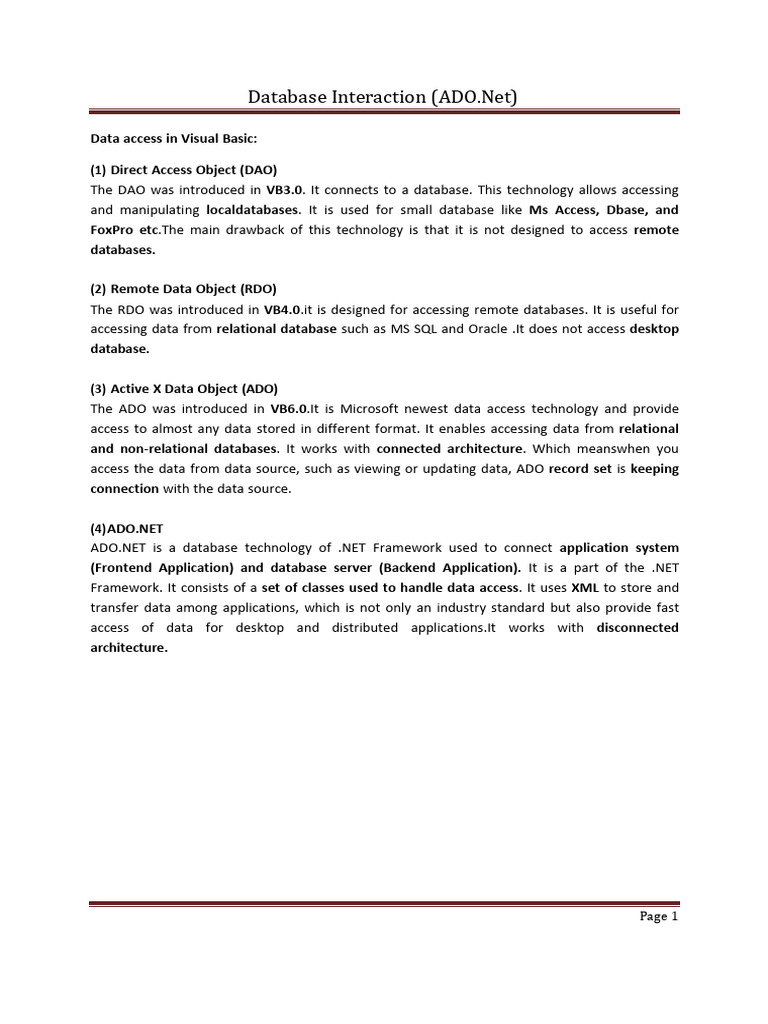 The ADO was introduced in VB6.0.It is Microsoft newest data access technology and provide