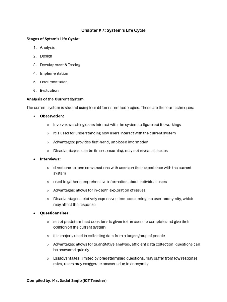 Chapter # 7: System’s Life Cycle