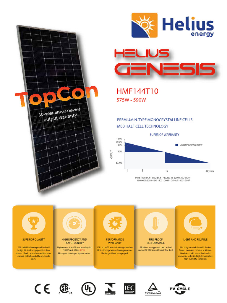 design, Helius Energy panels reduce 590W on 2.584m (22%). Helius Energy warranty can guarantee under IEC 61730 and Class C Fire Test. frames to ensure module resilience.