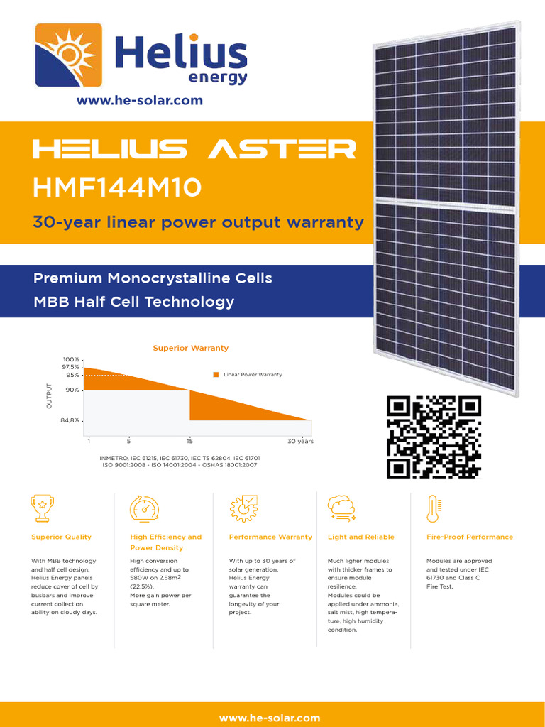 Helius Energy panels 580W on 2.58m2 Helius Energy ensure module 61730 and Class C