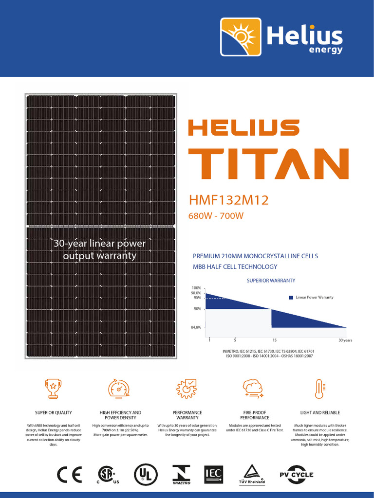design, Helius Energy panels reduce 700W on 3.1m (22.56%). Helius Energy warranty can guarantee under IEC 61730 and Class C Fire Test. frames to ensure module resilience.