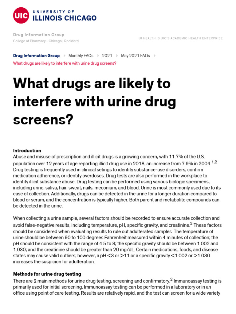 While urine drug screening using immunoassay is convenient, the test is associated with multiple
