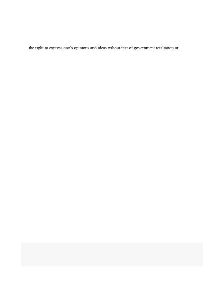 - the right to express one’s opinions and ideas wthout fear of government retaliation or