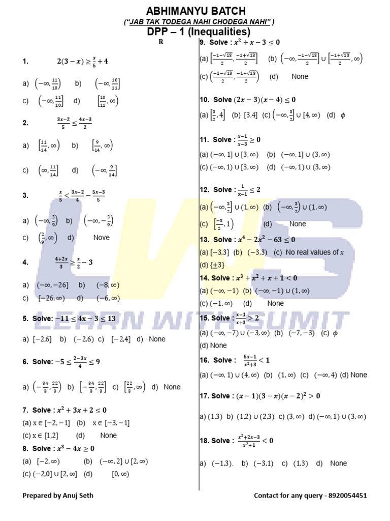 ANSWER KEY: INEQUALITIES (DPP-1)