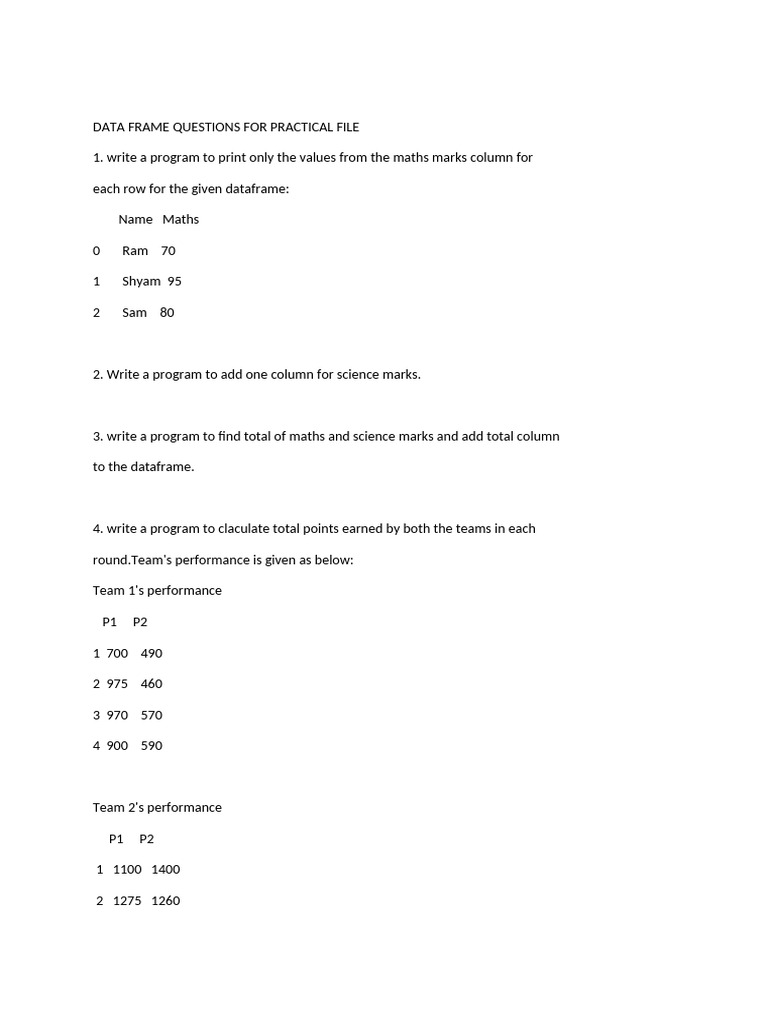 DATA FRAME QUESTIONS FOR PRACTICAL FILE
