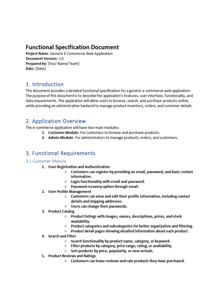 This document provides a detailed functional specification for a generic e-commerce web application.