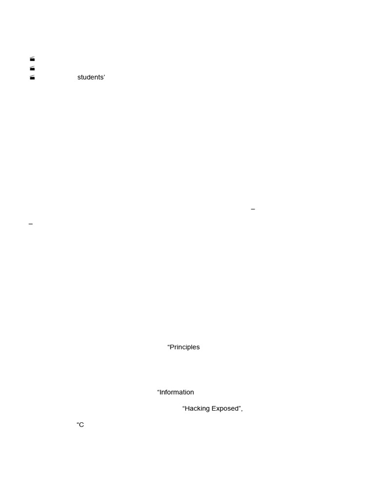 1. Michael E Whitman and Herbert J Mattord, “Principles of Information Security, Course Technology, 6th