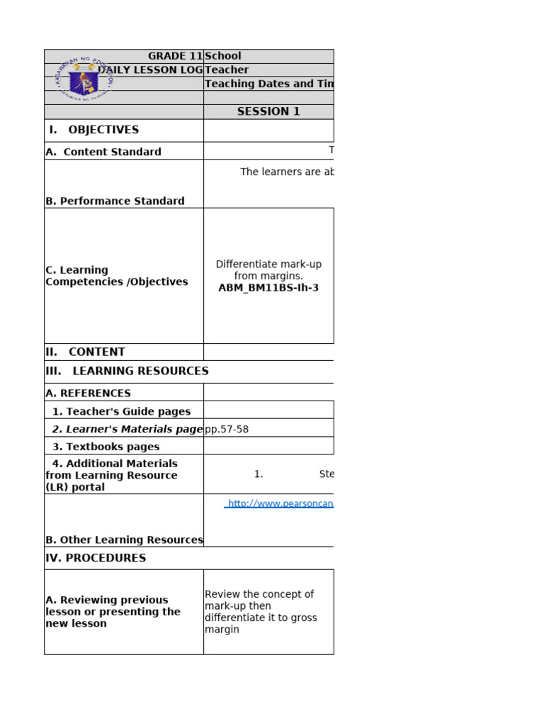 DAILY LESSON LOG Teacher