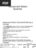 • Aliases created in SELECT clause are visible to ORDER BY