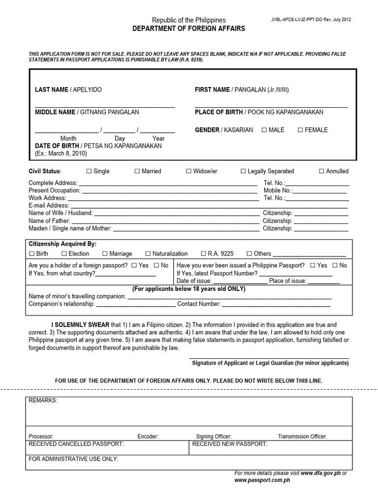 Philippine passport at any given time. 5) I am aware that making false statements in passport application, furnishing falsified or