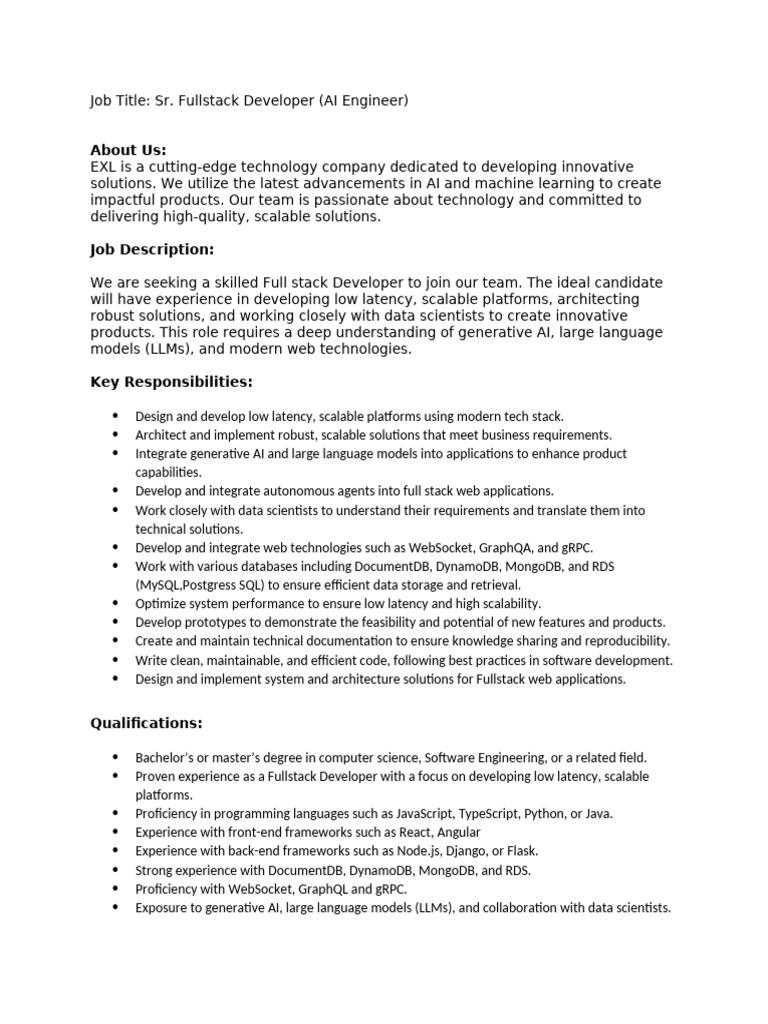 We are seeking a skilled Full stack Developer to join our team. The ideal candidate
