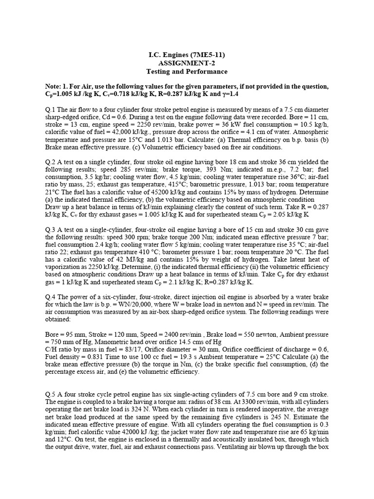 Q.5 A four stroke cycle petrol engine has six single-acting cylinders of 7.5 cm bore and 9 cm stroke.