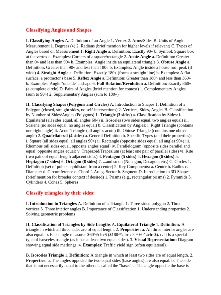 Measurement 1. Degrees (∘) 2. Radians (brief mention for higher levels if relevant) C. Types of