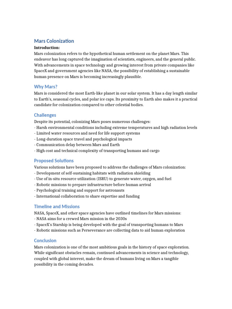 Various solutions have been proposed to address the challenges of Mars colonization: