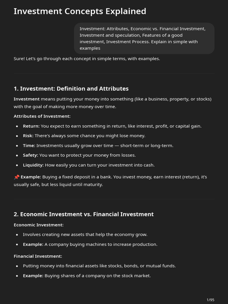 📌 Example: Buying a fixed deposit in a bank. You invest money, earn interest (return), it’s