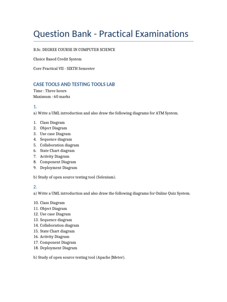 Question Bank - Practical Examinations