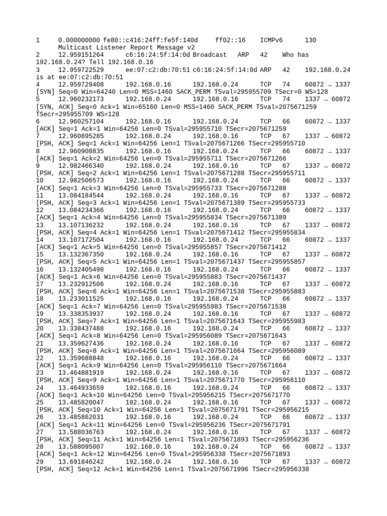 26 13.485862031 192.168.0.16 192.168.0.24 TCP 66 60872 → 1337