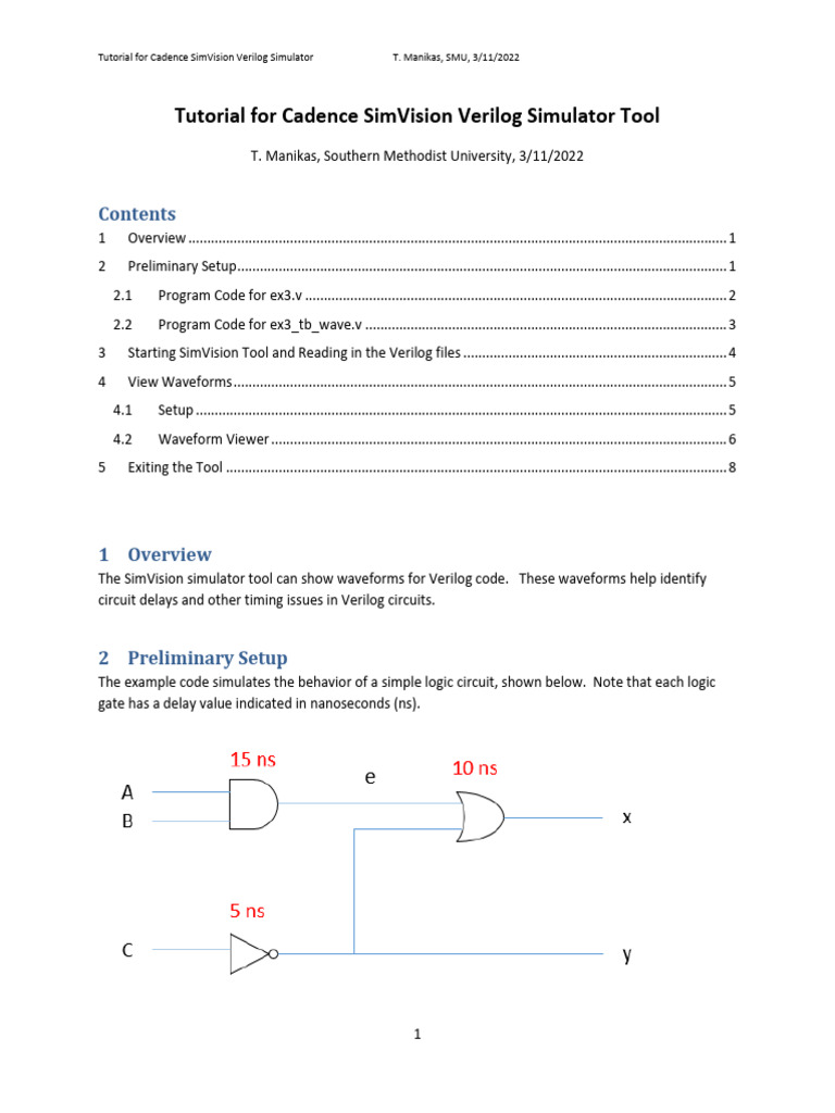 Tutorial for Cadence SimVision Verilog Simulator T. Manikas, SMU, 3/11/2022