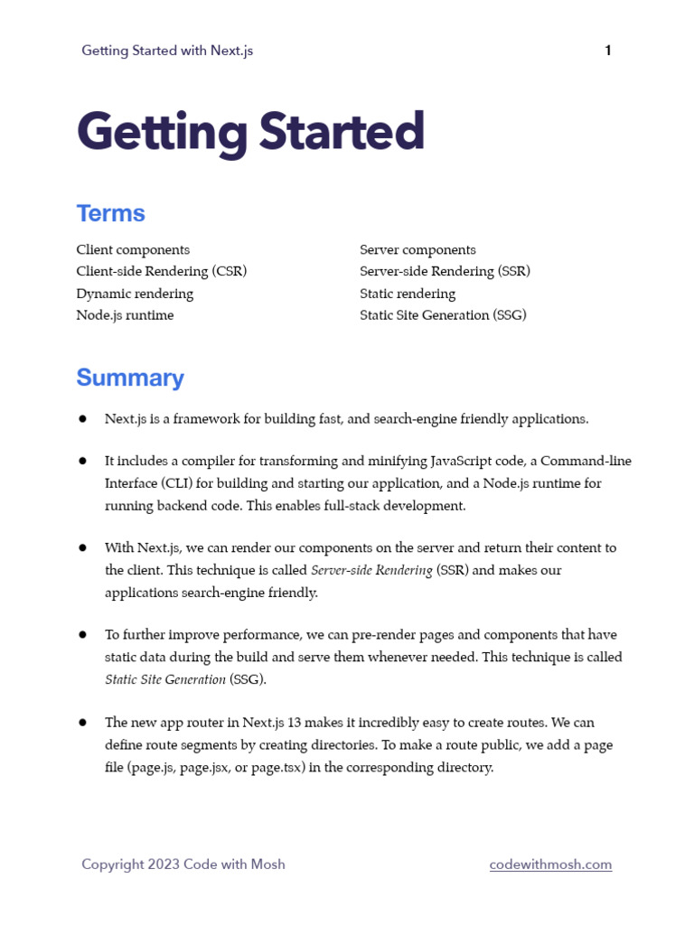 • In Next.js, components can be rendered at build time (called Static Rendering) or at
