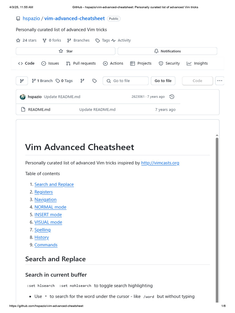 4/3/25, 11:55 AM GitHub - hspazio/vim-advanced-cheatsheet: Personally curated list of advanced Vim tricks